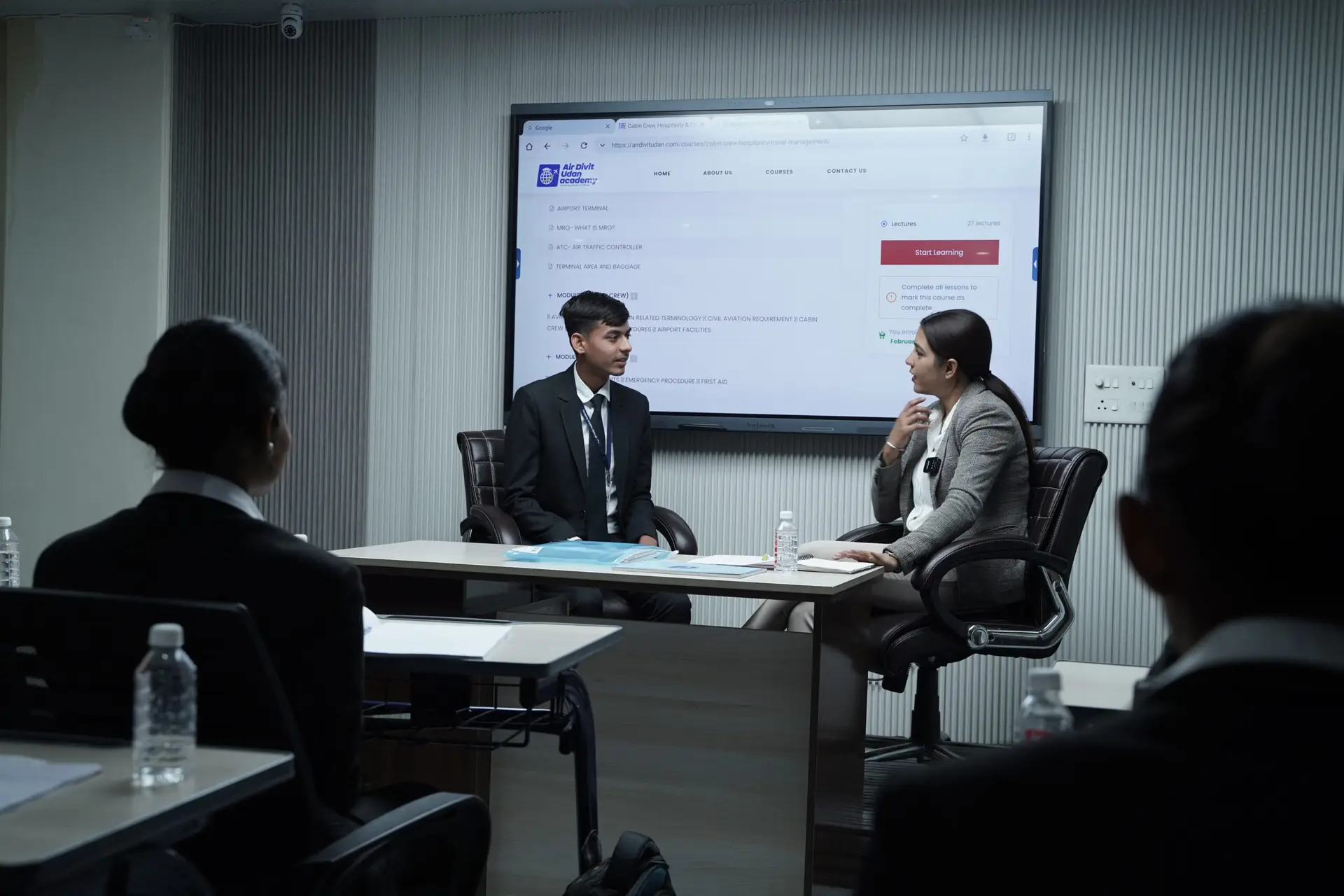 Learn in smart classrooms designed to reflect real-world aviation environments. With mock airport setups, aviation tools, and modern tech, our infrastructure ensures every student receives practical, hands-on experience from day one — preparing them for professional roles in cabin crew, airport management, and drone operations.